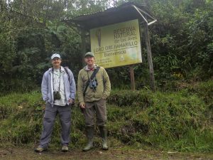 Glenn & Steve, birding in Colombia: here, at ProAves´s Yellow-eared Parrot Reserve, above Jardin.